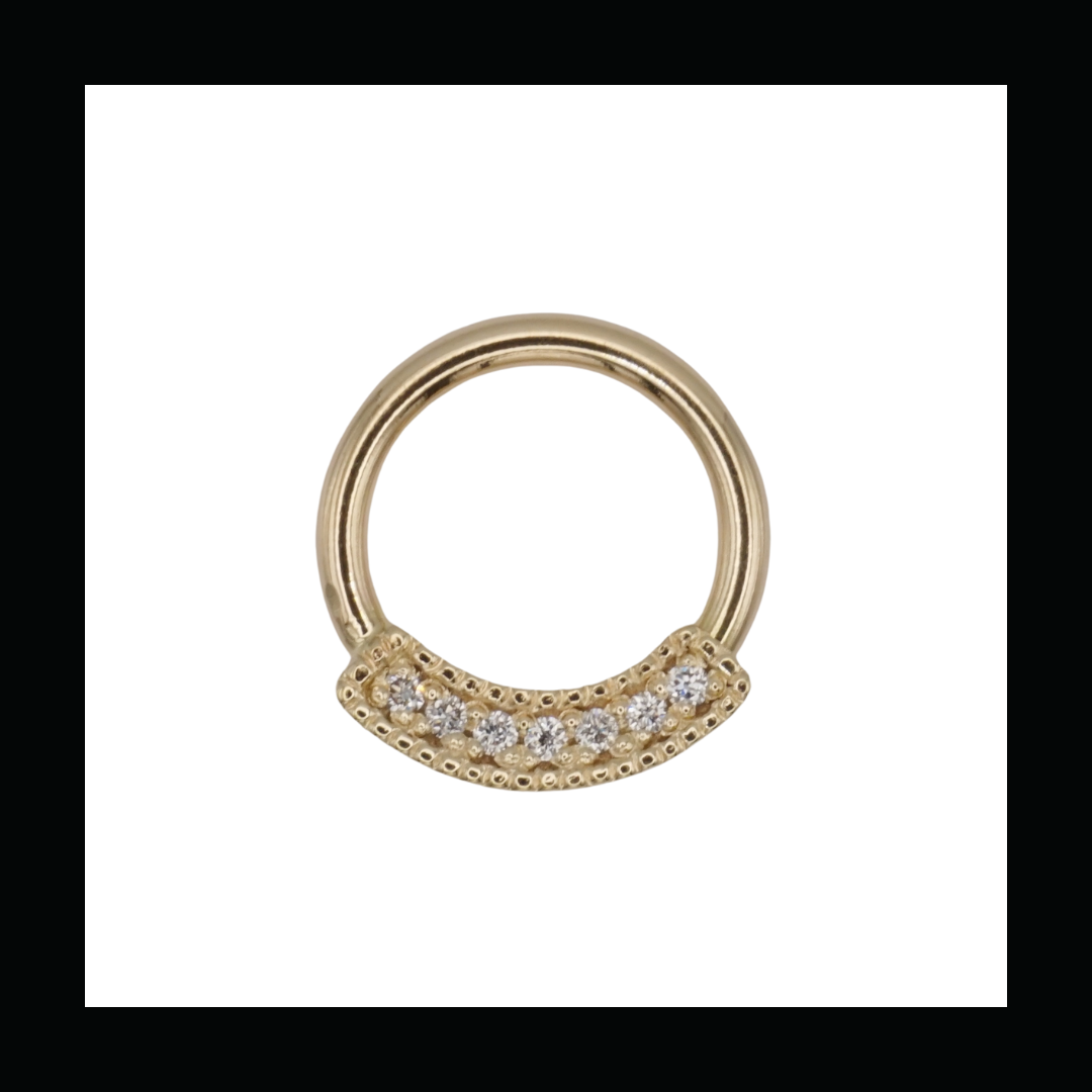 16g seam ring holding 7 - 1mm Diamonds with beaded rim.