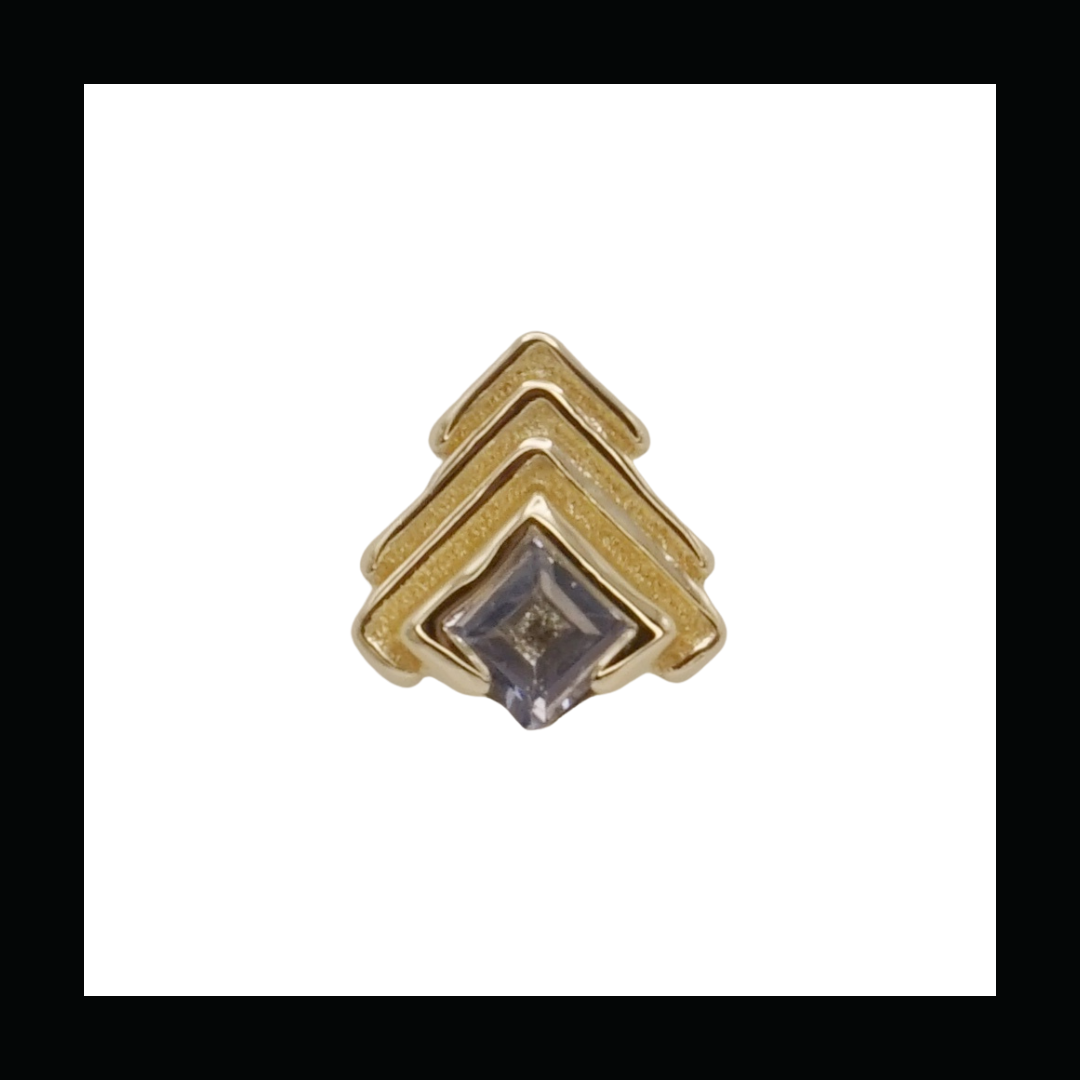 Threadless End with a textured rim, and a partial bezel holding a 2mm princess cut gemstone.