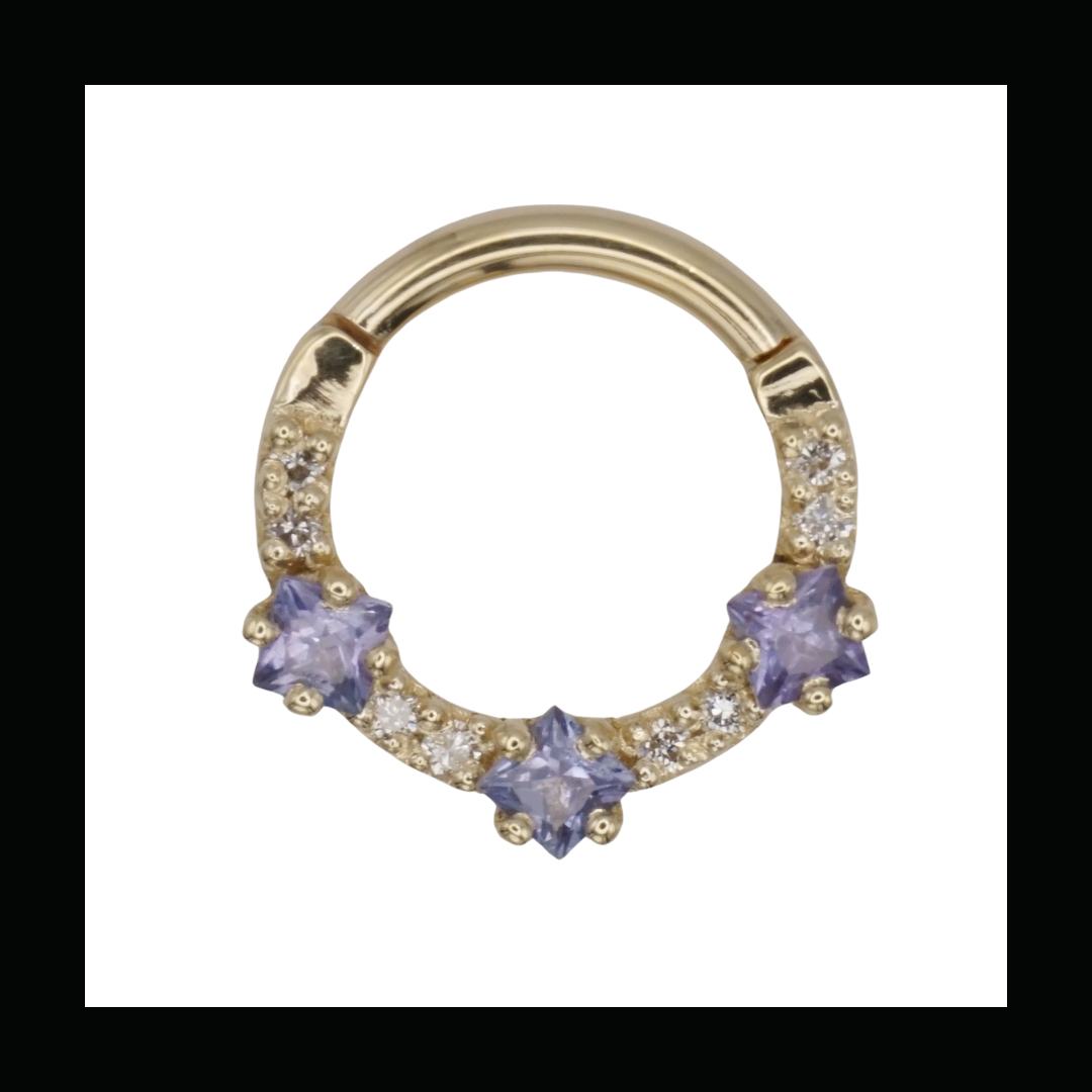 Hinged ring holding 8 - 1mm round Diamonds and 3 - 2mm princess cut stones