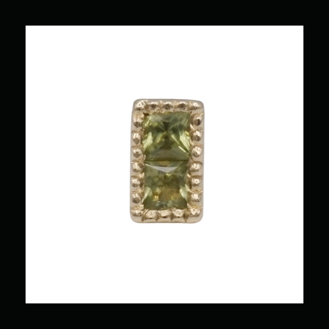 Threadless end holding 2 - 2mm princess cut stones in a beaded bezel.