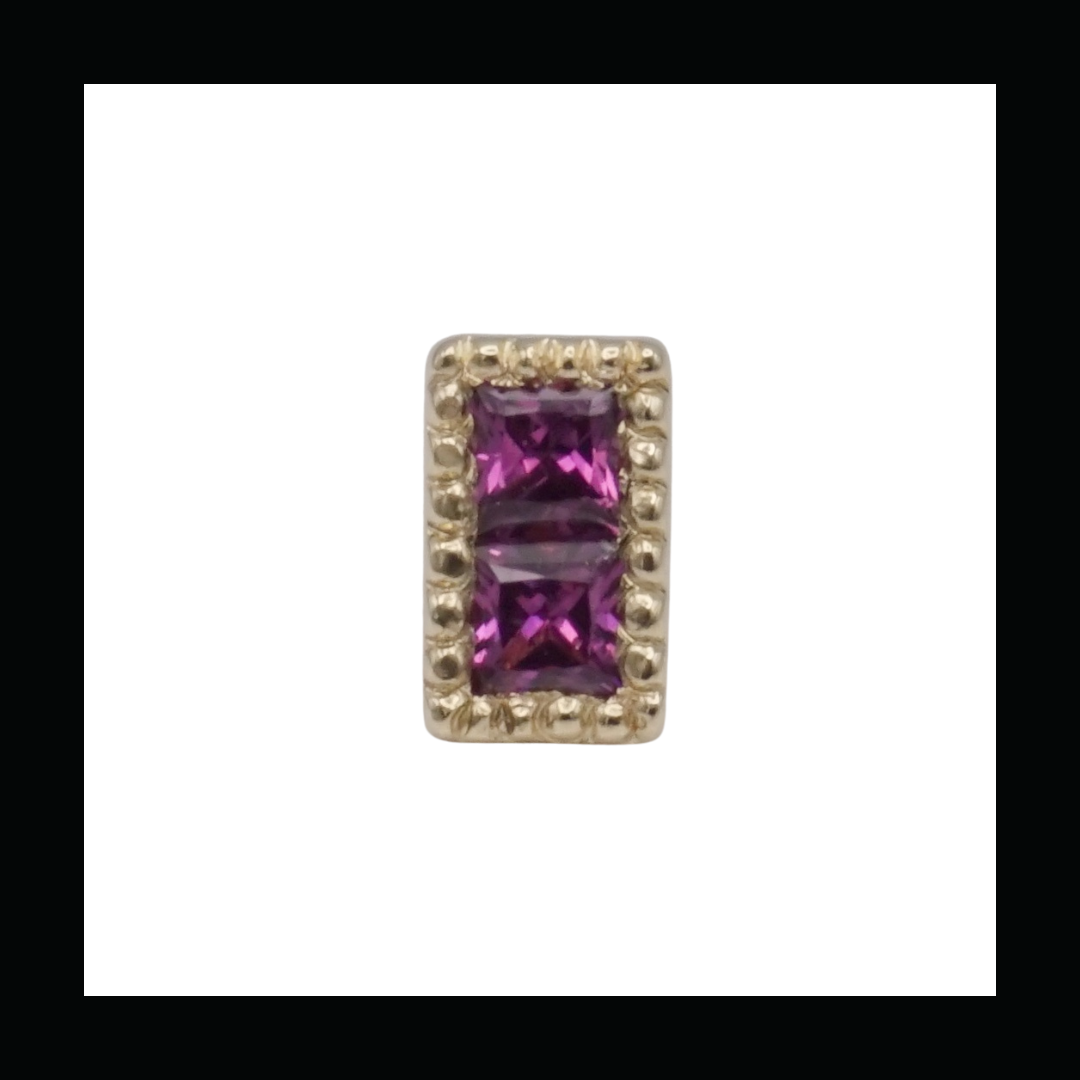 Threadless end holding 2 - 2mm princess cut stones in a beaded bezel.