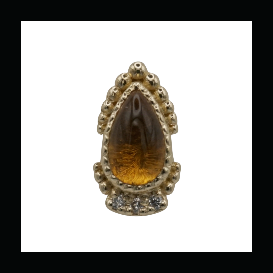 Theadless end holding a 3mm x 5mm Pear cabachon with Diamond and bead accents.