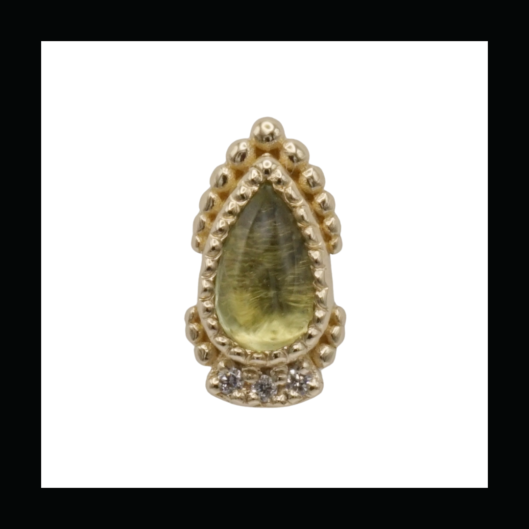 Theadless end holding a 3mm x 5mm Pear cabachon with Diamond and bead accents.