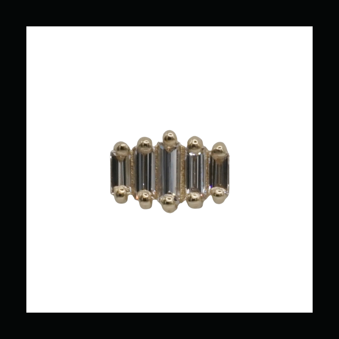 Threadless end holding 5 Baguette Diamonds - (2) 2mm x 1mm / (2) 2.5mm x 1mm / (1) - 3mm x 1mm