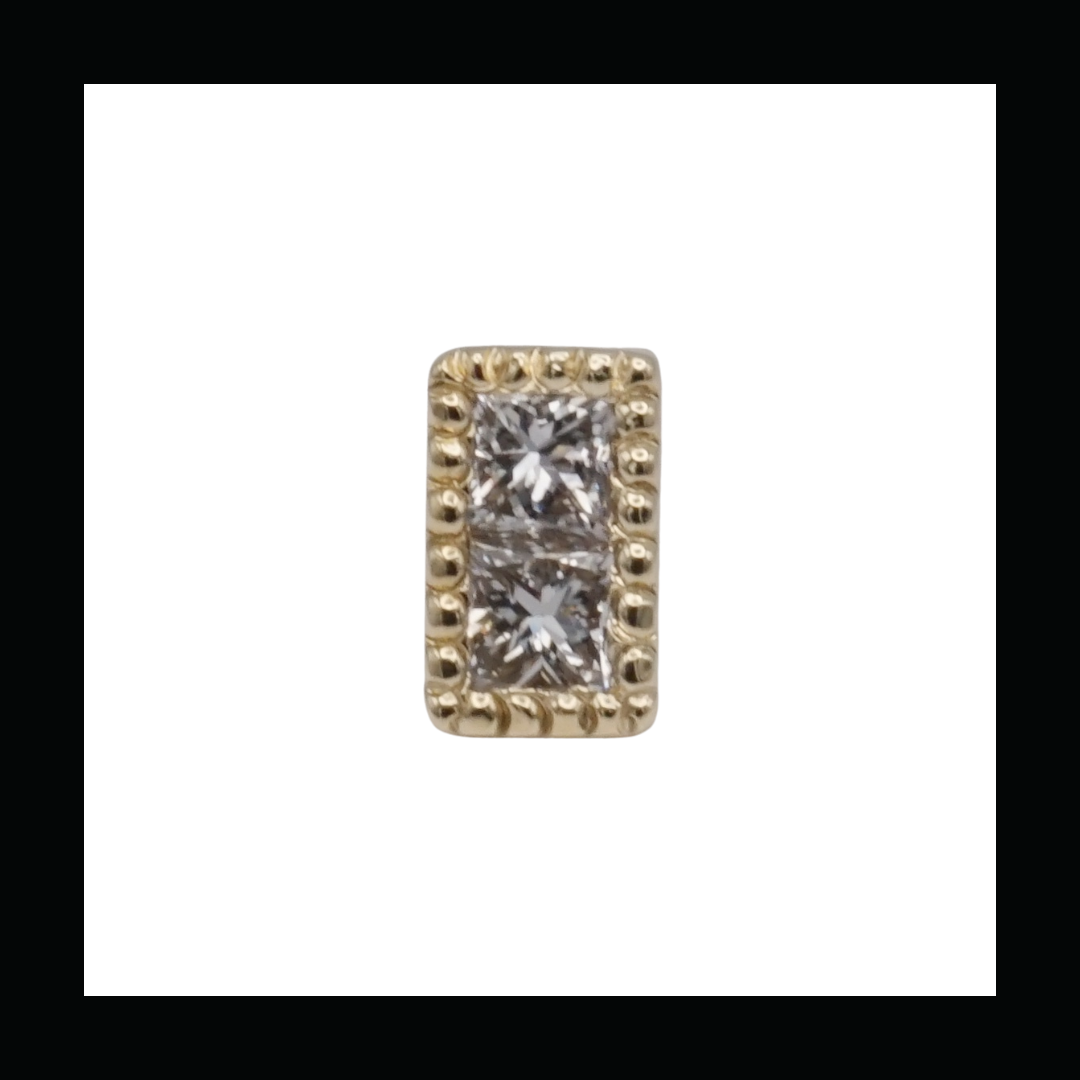 Threadless end holding 2 - 2mm princess cut Diamonds in a beaded bezel.
