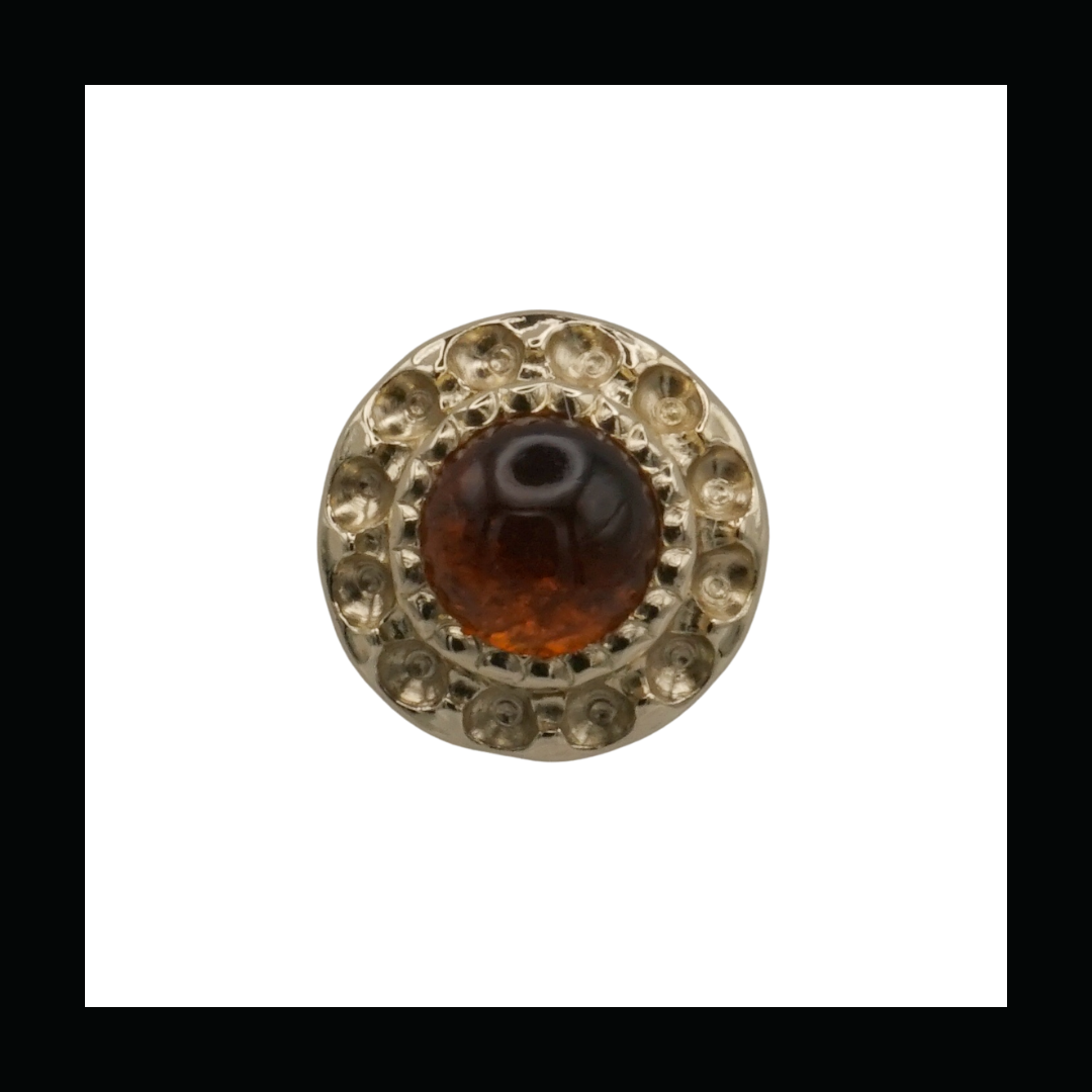 Threadless End with a textured rim, and a beaded bezel holding a 3mm cabochon stone.