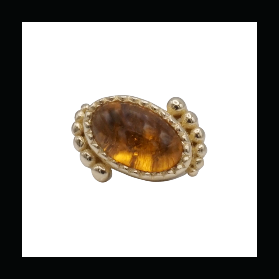 Theadless end holding a 3mm x 5mm oval cabachon with bead accents.