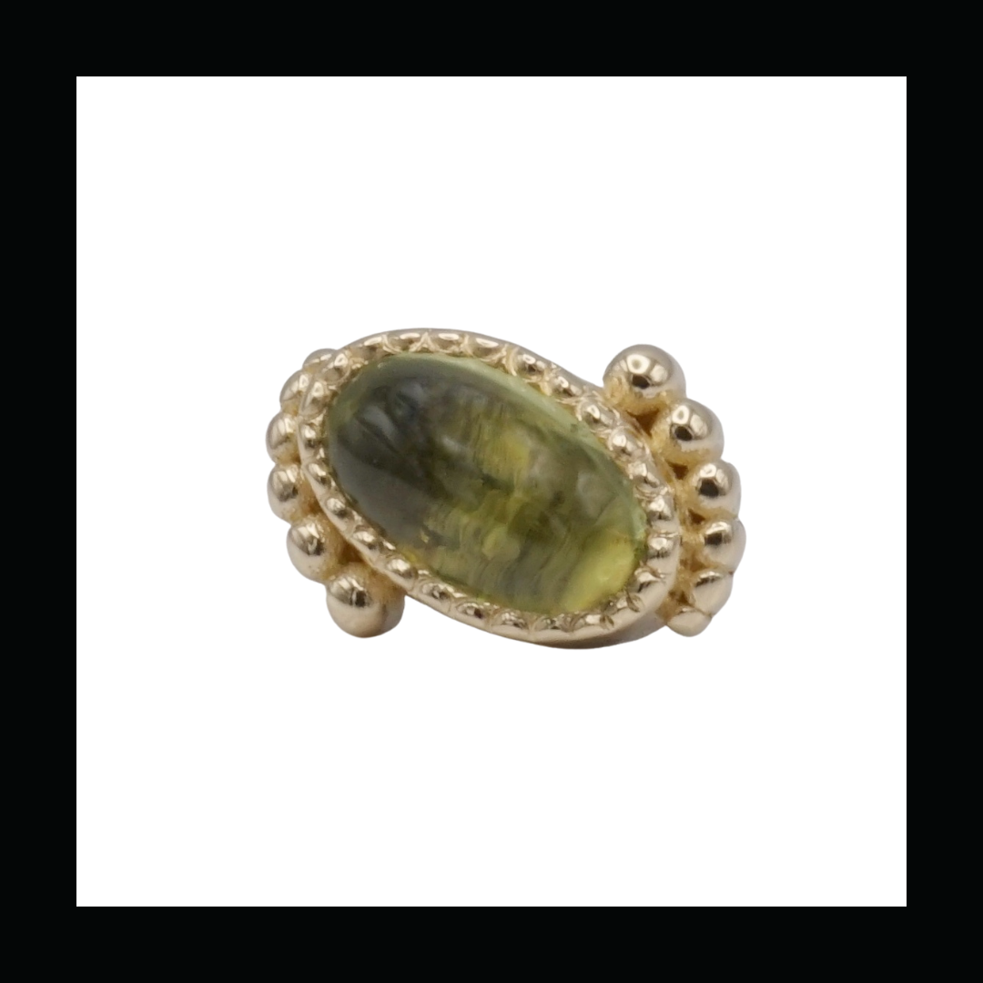 Theadless end holding a 3mm x 5mm oval cabachon with bead accents.