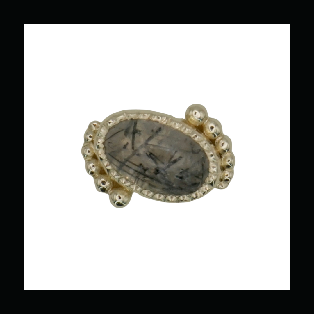 Theadless end holding a 3mm x 5mm oval cabachon with bead accents.