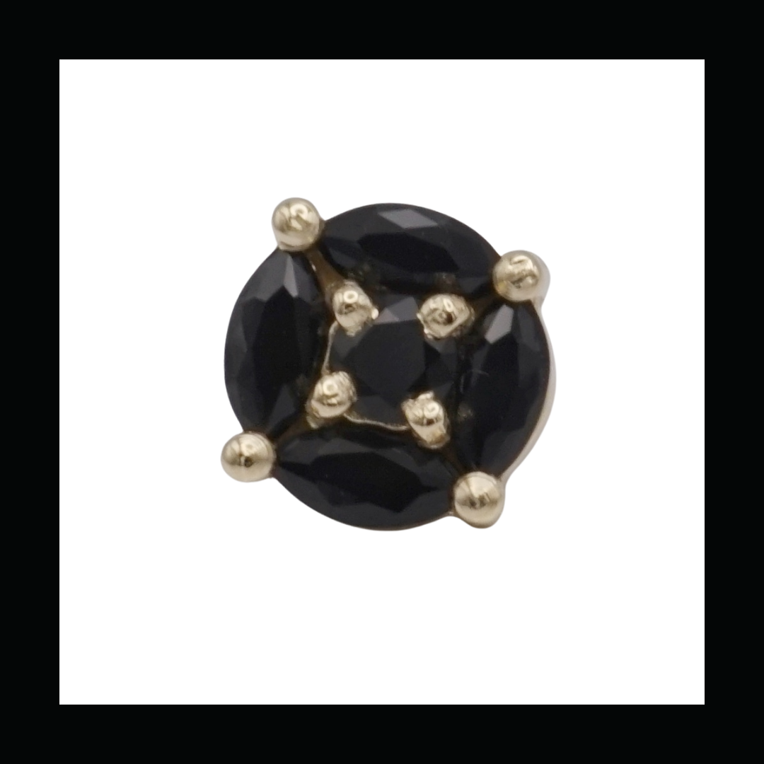 Theadless end holding 4 - 2mm x 4mm marquise stones and 1 - 2.5mm round stone.