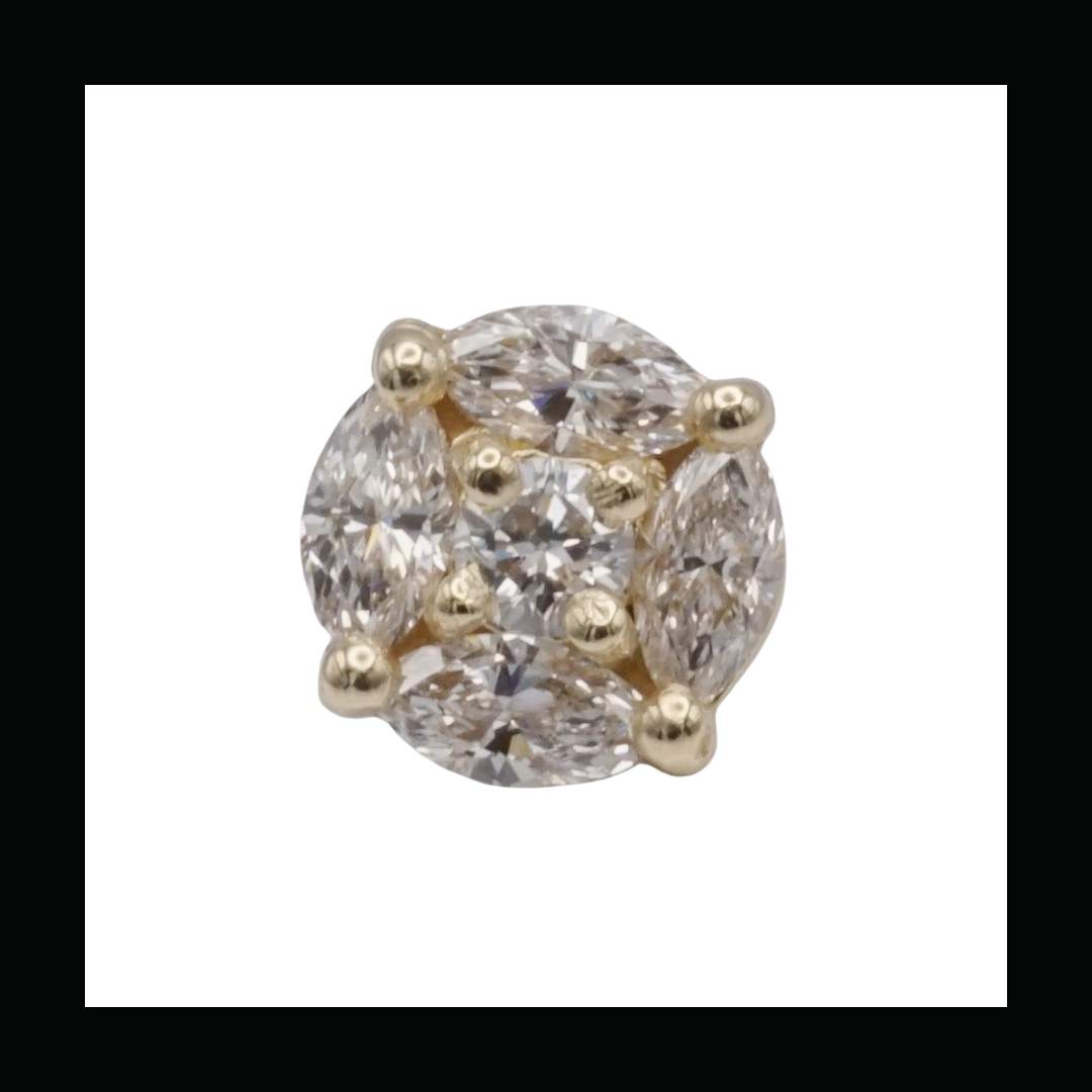 Theadless end holding 4 - 2mm x 4mm marquise Diamonds and 1 - 2.5mm round Diamond.
