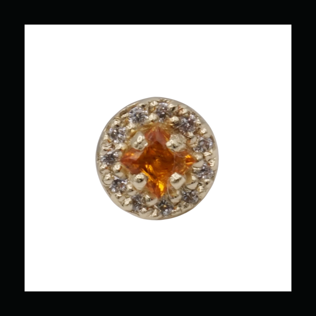 2mm princess cut stone surrounded by a halo of 11 - 0.8mm Diamonds.