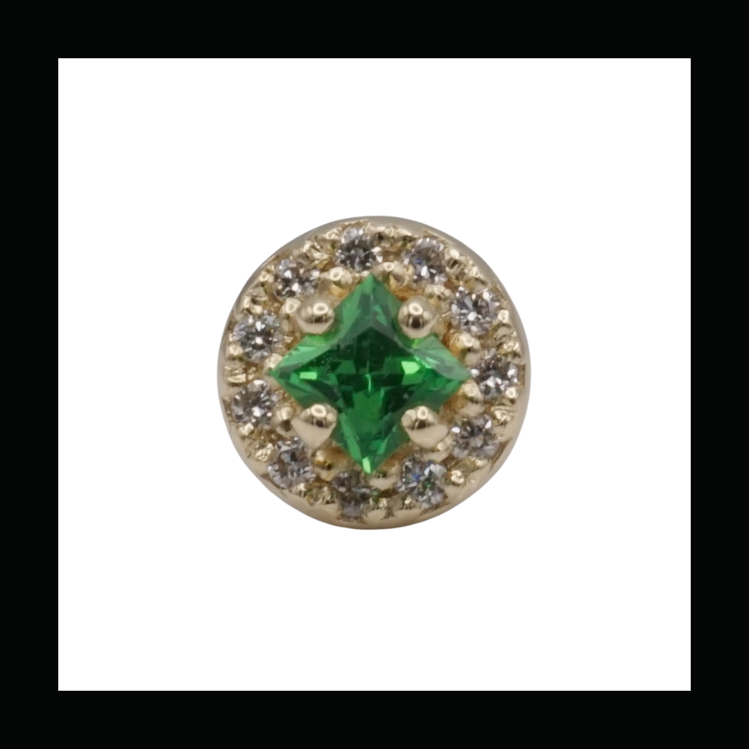 2mm princess cut stone surrounded by a halo of 11 - 0.8mm Diamonds.
